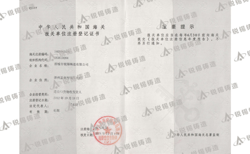 企業(yè)使命:立足鑄造產(chǎn)業(yè),鑄造優(yōu)質(zhì)產(chǎn)品,誠信服務(wù)客戶。造福全體員工,真情回饋社會,共創(chuàng)美好未來。