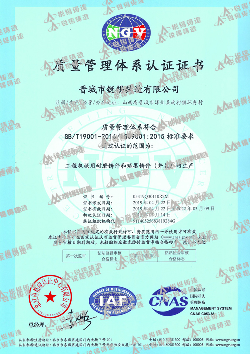 企業(yè)愿景:將銳錫鑄造打造成中國球墨鑄造業(yè)優(yōu)良品牌,使我們成為顧客優(yōu)質(zhì)的合作伙伴。